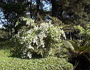 練習グリーン横に数株植えられています。秋の真っ赤な実と春の真っ白な花が対照的です。