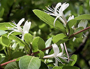 スイカズラは、半常緑の右巻きのつる性低木です。