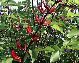 220号線を真っ赤に彩っているのは、サンゴシトウです。220号線から空港に下る道路もサンゴシトウですので、サンゴシトウの花も参考までに掲げておきます。