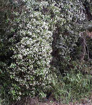 山野の林内に生える常緑のつる植物で、茎は、長くのびて他物にはい登り、長さは10m位になるそうです。