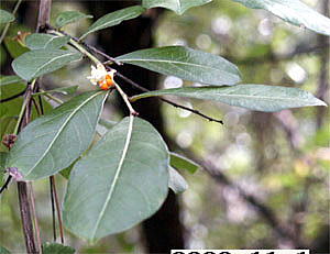 暖地の海に近いところに生育する落葉低木です。枝は下垂気味に横に伸びていました。