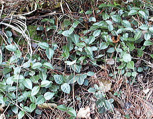 葉が暗緑色なので目につき、家の塀などに這わしているイタビカズラに似ていたので、撮影しました。