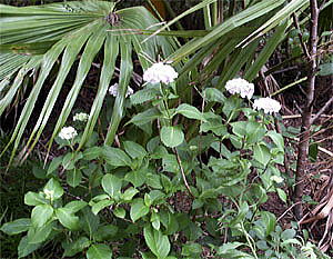 ガクアジサイを母種とした園芸種で、茎や葉は同じ。