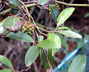 今年(03年)になって、ハクサンボクの周辺から8番ティーグランド手前の左側を探したところ、かなりのサネカズラを見つけました。