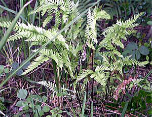 練習グリーン横のピラカンサ、ヒサカキなどの根元に数株ありました。 茎は、茶褐色で光沢があります。 観察を続けるつもりでしたが、やはり雑草ですから手入れの良いコースなので、そのうちに姿を消してしまいました。 シダ類は、普通の図鑑には載っていないものが多く、最終的には博物館に鑑定してもらいました。
