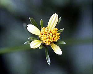 花は、秋,黄色の管状花からなる頭花をつけ,外周部には少数の結実しない舌状花をもつ。
