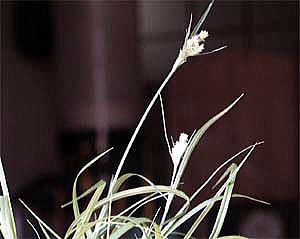 葉は、長さ10〜15cm,幅2mm内外で、四方に広がる。