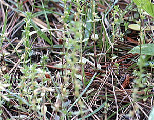 草丈が10p程度で低く、おまけに花は顕微鏡的に小さいので、ほとんど見過ごされる野草です。
