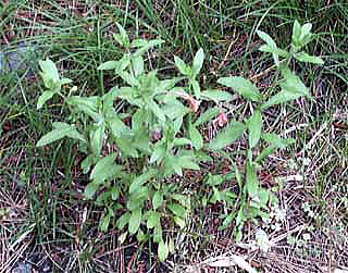 茎は、斜めに立ち上り,高さ20〜40cm,基部から多数分枝する。白毛があり,上部では腺毛も混じる。