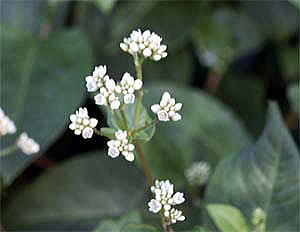 葉は、同じタデ科のイタドリに似たところがありますが、花は、名のとおり、ソバの花そっくりです。