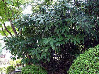 関東地方以西から琉球列島の山地の照葉樹林内に生え,庭木としてもふつうに栽植される常緑低木。