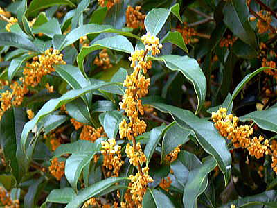 和名は、白花のギンモクセイに対して、橙黄色の花を金にたとえたもの。