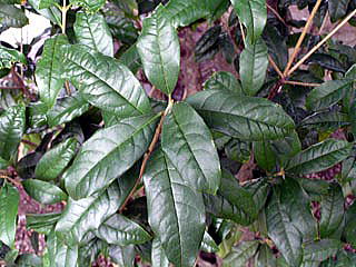 葉は、長さ5〜9cm,革質で、裏面が多少黄味を帯びる。