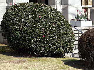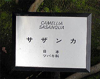 県庁庭園のあちこちにサザンカが植えられ、庭園の芝生やコーナーのアクセントになっています。