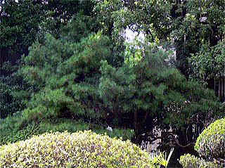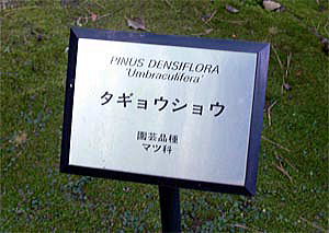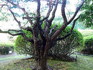県庁庭園の南庭園に、多くのクロマツに混じって、池の南側に、タギョウショウが植えられています。