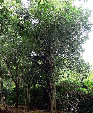 樹高は、6〜8m、幹径は30〜50cm。樹形は長楕円形か、半球形に繁茂、幹は灰白色で平滑、枝は無毛。