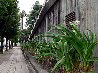 県の花であるハマユウは、県庁庭園の随所で観察できるほか、県庁敷地の外周スペースにも、整然とハマユウが植栽され、大きな株に美しい白い花を咲かせています。