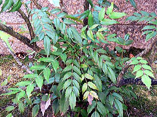 葉は互生し、茎の頂に集まる。小葉は卵形で,9〜17枚。