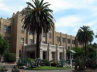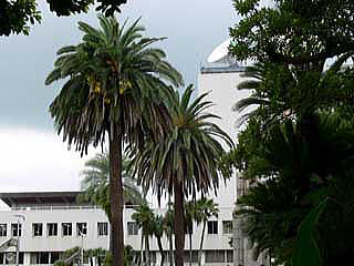 県庁庭園にも、県内で最初に植えられたフェニックスが、本館玄関前に最近まで立派な姿を見せていましたが、09年に、枯死し、伐採された(09.5.22)ことは、誠に残念なことです。樹齢99年だったようです。