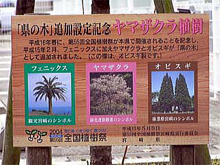 なお、第55回全国植樹祭の本県開催を記念して、フェニックスのほかに、県の木に、ヤマザクラとオビスギが追加指定されました(03年2月)。