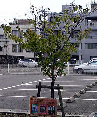 県庁南庭園東側の駐車場敷地の南側に、ヤマザクラの標本が植えられています。