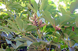 高さ6〜10m。葉は互生,柄は10〜30cm,6〜9個の小葉からなる。頂小葉がもっとも大きい。