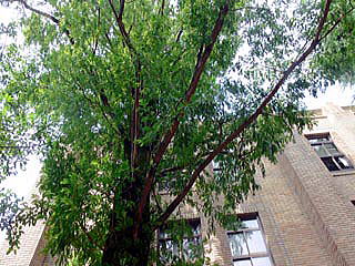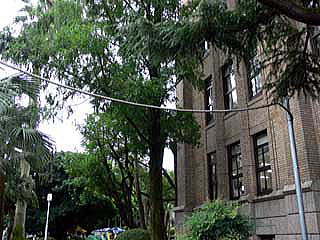 県庁本館の南東角にメタセコイアが植えられています。 美しい樹形と高木を誇るメタセコイアですが、建物に接近した場所に植えられているので、ややいびつな樹形をしています。