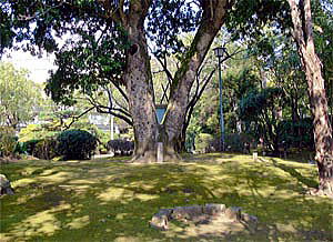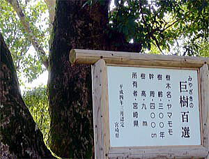県庁南庭園には、樹齢300年のヤマモモの大木が植えられ、県の巨樹百選に指定されています。