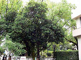 県庁庭園の南角、議会棟前にも大きなヤマモモがあります。