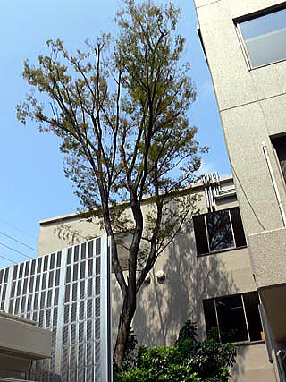 あとから建てられた付属施設に囲まれ、少し窮屈そうな格好で、空に向けて精一杯、枝を伸ばしていました。