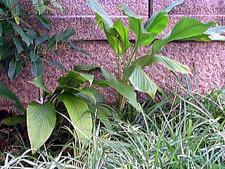 ヤブツバキのある県庁本館北側の植え込みに、ウコンが2株ありました。
